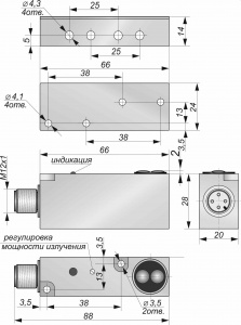 Описание OC192-NO/NC-PNP-P(с регулировкой, с кронштейном 66х24х14)