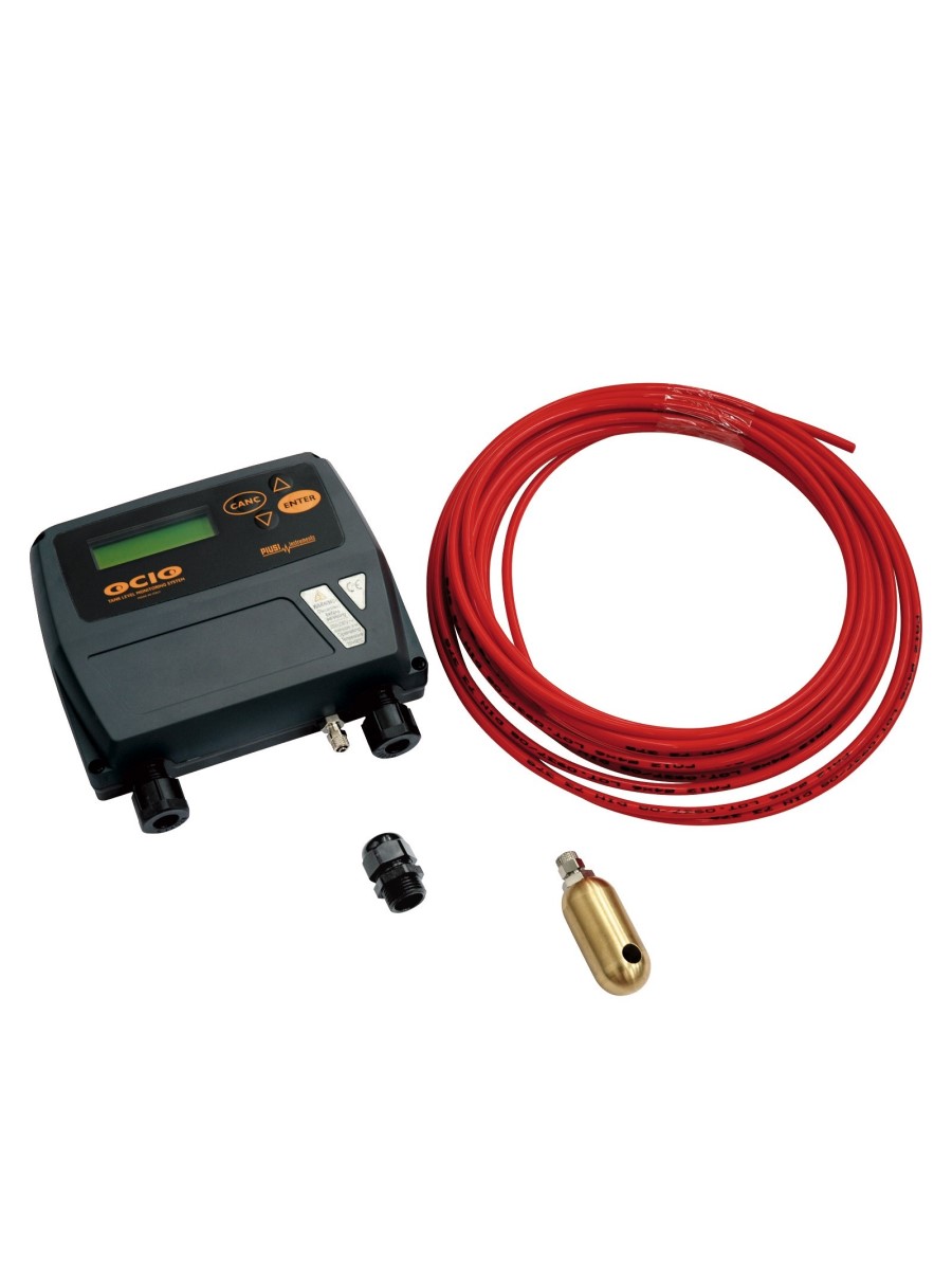 Система непрерывного управления уровнем в резервуаре. OCIO определяет статическое давление, создаваемое высотой жидкости, используя трубу, помещенную в резервуар и отображает уровень жидкости или объем. Система состоит из: • Трубы для определения статического давления. Труба с наконечником вставляется через верхнюю часть резервуара и погружается в жидкость до касания с дном резервуара. • Блока управления для отображения уровня и управления системой. Блок оснащен интуитивным и полным программным обеспечением и позволяет подключить два устройства тревоги или блокировки. С помощью программного обеспечения можно: