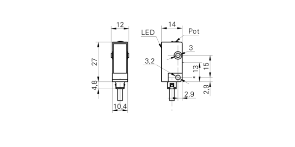 Дискретный выход: PNP • Диапазон измерения: 10000 мм • Электрическое подключение: кабель • Длина кабеля: 2м • Класс защиты: IP65 • Рабочее напряжение: 12 ÷ 24 V DC • Материал корпуса: пластик