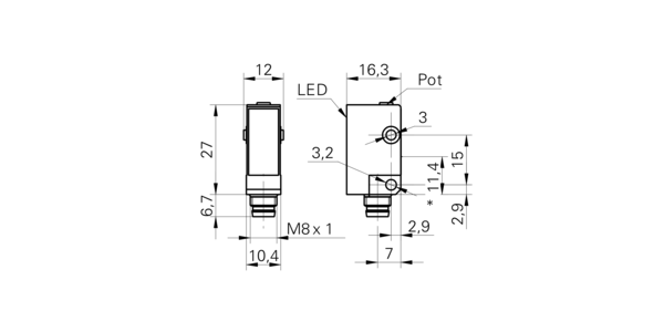 Дискретный выход: PNP • Диапазон измерения: 130 мм • Исполнение: с подавлением заднего фона • Электрическое подключение: разъём M8x1 4-пин • Класс защиты: IP67 • Рабочее напряжение: 12 ÷ 24 V DC • Материал корпуса: пластик