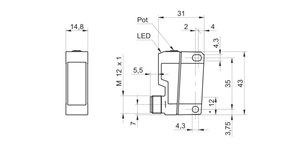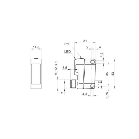 Дискретный выход: PNP • Диапазон измерения: 350 мм • Исполнение: с подавлением заднего фона • Электрическое подключение: разъём M12x1 4-пин • Класс защиты: IP67 • Рабочее напряжение: 12 ÷ 24 V DC • Материал корпуса: пластик
