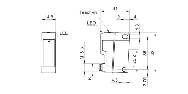 Дискретный выход: PNP • Диапазон измерения: 5200 мм • Электрическое подключение: разъём M8x1 4-пин • Класс защиты: IP67 • Рабочее напряжение: 12 ÷ 24 V DC • Материал корпуса: пластик