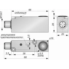 Дискретный выходPNP Диапазон измерения16000 мм Корпуспластик ПроизводительСКБ Индукция