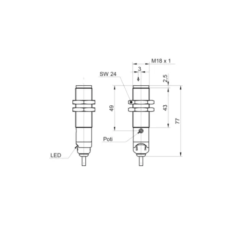 Дискретный выход: NPN • Диапазон измерения: 60000 мм • Электрическое подключение: кабель • Длина кабеля: 2м • Крепежная резьба: M18x1 • Класс защиты: IP67 • Рабочее напряжение: 12 ÷ 24 V DC • Материал корпуса: латунь никелированная