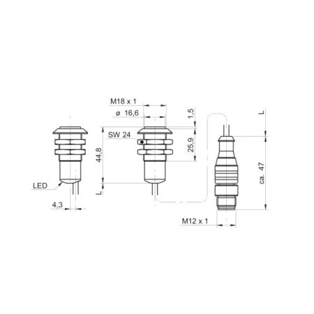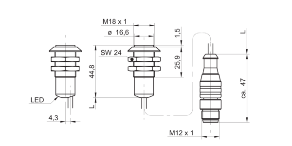 Диапазон измерения: 20000 мм • Электрическое подключение: разъём M12x1 4-пин, кабель • Крепежная резьба: M18x1 • Класс защиты: IP67 • Рабочее напряжение: 12 ÷ 24 V DC • Материал корпуса: пластик