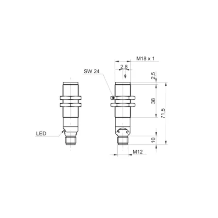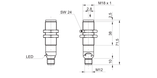 Диапазон измерения: 60000 мм • Электрическое подключение: разъём M12x1 4-пин • Крепежная резьба: M18x1 • Класс защиты: IP67 • Рабочее напряжение: 12 ÷ 24 V DC • Материал корпуса: латунь никелированная