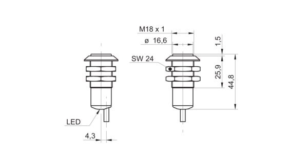 Дискретный выход: NPN • Диапазон измерения: 80 мм • Электрическое подключение: кабель • Длина кабеля: 2м • Крепежная резьба: M18x1 • Класс защиты: IP67 • Рабочее напряжение: 12 ÷ 24 V DC • Материал корпуса: пластик