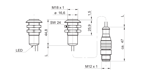 Дискретный выход: NPN • Диапазон измерения: 80 мм • Электрическое подключение: разъём M12x1 4-пин, кабель • Крепежная резьба: M18x1 • Класс защиты: IP67 • Рабочее напряжение: 12 ÷ 24 V DC • Материал корпуса: пластик