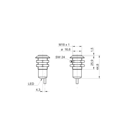 Дискретный выход: PNP • Диапазон измерения: 300 мм • Электрическое подключение: кабель • Длина кабеля: 2м • Крепежная резьба: M18x1 • Класс защиты: IP67 • Рабочее напряжение: 12 ÷ 24 V DC • Материал корпуса: пластик