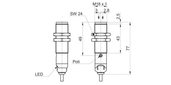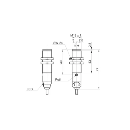 Дискретный выход: PNP • Диапазон измерения: 300 мм • Электрическое подключение: кабель • Длина кабеля: 2м • Крепежная резьба: M18x1 • Класс защиты: IP67 • Рабочее напряжение: 12 ÷ 24 V DC • Материал корпуса: латунь никелированная