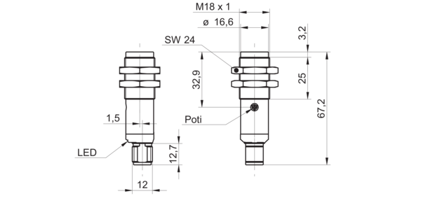 Дискретный выход: NPN • Диапазон измерения: 800 мм • Электрическое подключение: разъём M12x1 4-пин • Крепежная резьба: M18x1 • Класс защиты: IP67, IP69K • Рабочее напряжение: 12 ÷ 24 V DC • Материал корпуса: сталь нержавеющая