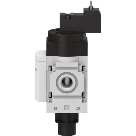 3/2 распределитель с электромагнитным управлением и пилотным каскадом.