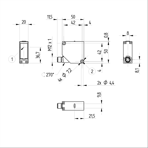 Диапазон измерения: 20000 мм • Электрическое подключение: разъём M12x1 4-пин • Класс защиты: IP67, IP68 • Рабочее напряжение: 12 ÷ 24 V DC • Материал корпуса: пластик