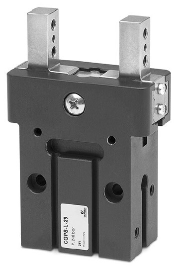 Широкий диапазон доступных размеров позволяют найти лучшее решение для любого перемещения. Захваты могут поставляться с втулками и центрирующими вилками (допуск Н8), которые после установки на корпусе и/или на губках способны гарантировать, при техническом обслуживании, высокую взаимозаменяемость захвата и расширений.