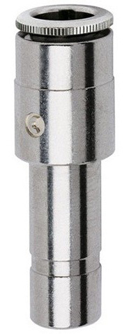 Форма фитинга: переходник прямой втулочный • Подключение: 8 мм (трубка)-10 мм (втулка) • Материал корпуса: латунь никелированная