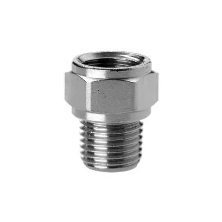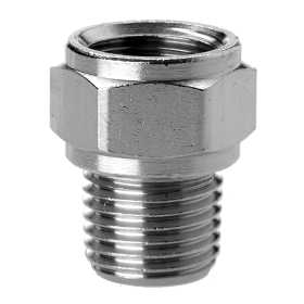 Форма фитинга: футорка расширяющая • Подключение: G1/2-R3/8 • Материал корпуса: латунь никелированная