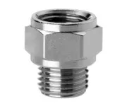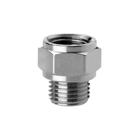 Форма фитинга: футорка расширяющая • Подключение: G3/8-G1/4 • Материал корпуса: латунь никелированная
