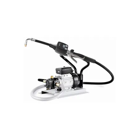 Переносной комплект с электронасосом серии Flowstar 230 В для масла с ручкой для переноски и всасывающим шлангом для бочек 205 л и контейнеров 1000 л, подающим шлангом и раздаточным пистолетом со счетчиком.