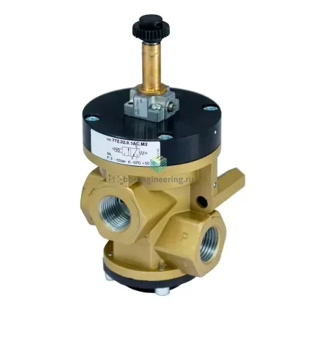 3/2 распределитель с электромагнитным управлением и пилотным каскадом.
