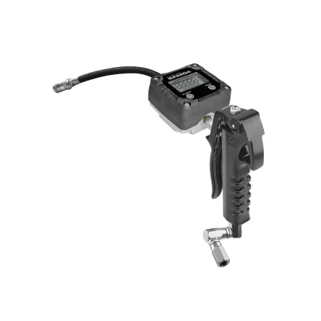 Пистолет с элетронным счетчиком для консистентной смазки. Оснащен гибким носиком с 3-х лепестковым наконечником и Z - образным шарниром. Ударопрочность, четкость показаний, повышенная долговечность, простота замены батарей и функция калибровки. Максимальная производительность составляет 2,5 кг/мин. Соединение на входе: 1/4" BSP (F). Максимальное давление на выходе 500 бар.