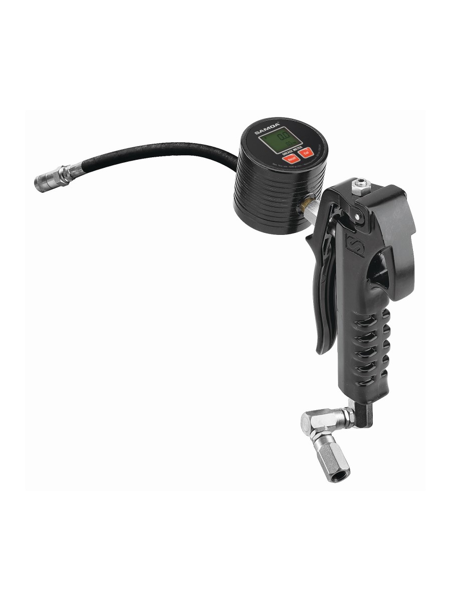 Высоконапорный пистолет для раздачи смазки со счетчиком.Счетчик с овальными шестернями с электронным цифровым ЖК-дисплеем для точной раздачи консистентной смазки. Дисплей, который работает от двух легко заменяемых щелочных батареек AAA 1,5 В, индицирует закачанное количество смазки в граммах (до 9999 граммов) и суммарное количество в килограммах (до 999999 кг). Показания дозировочного дисплея сбрасываются нажатием кнопки. Счетчик устанавливается на пистолет для раздачи консистентной смазки под высоким давлением с эргономичным корпусом и курком, снижающими усталость руки оператора. Максимальное рабочее давление 500 бар (7150 фунт/кв. дюйм). Пистолет оборудован резиновым шлангом с двойной оплеткой (400 мм) с гидравлическим соединителем для консистентной смазки и Z-образным шарниром.