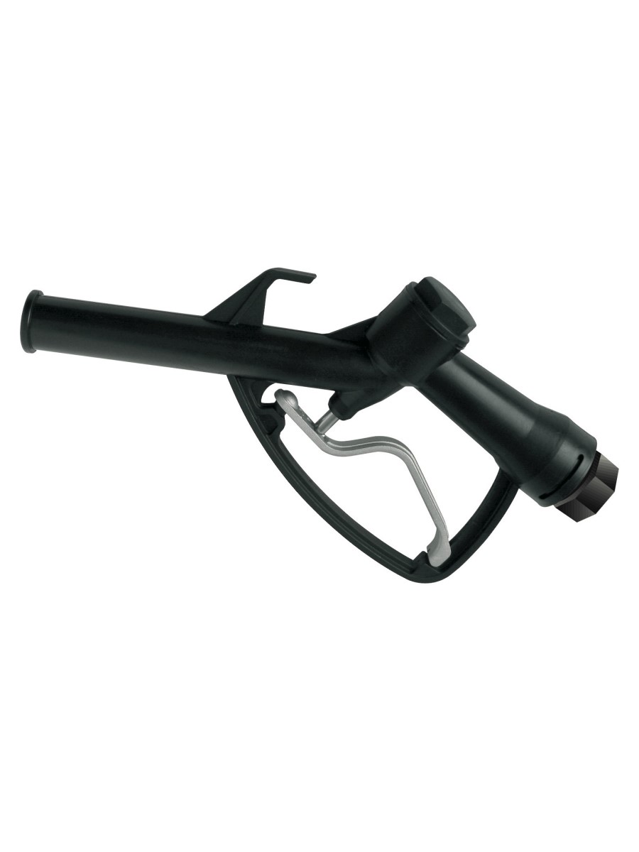 Ручные пистолеты. Они отличаются повышенной эффективностью благодаря низкому сопротивлению потоку, а также простотой использования и экономичностью. Учитывая их характеристики, их можно использовать в любой установке для перекачивания, в том числе с подачей самотеком. Они поставляются с блокиратором спускового рычага, который можно снять, они предлагаются с различными резьбовыми креплениями и с трубой уменьшенного сечения для бензина, не содержащего свинец. Используется для перекачивания воды, масла, дизельного топлива. Производительность 80 л/мин. Диаметр носика 34 мм. Соединение на вход 1" BSP F