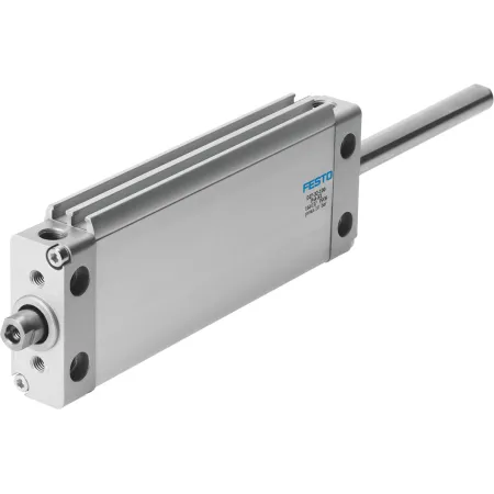 Цилиндры одностороннего действия имеют только одно отверстие пневматического подключения. Движение под действием сжатого воздуха осуществляется в одну сторону, возврат осуществляется при помощи пружины. Таким образом, для управления таким цилиндром требуется всего один пневматический сигнал.