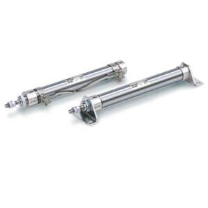 Цилиндры двустороннего действия имеют два отверстия для подвода сжатого воздуха – для выдвижения и втягивания штока соответственно.