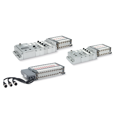 Типичная одиночная модульность Серии F позволяет управлять через один разъем от 2 до 24 распределителями, в т. ч. в исполнении Fieldbus.