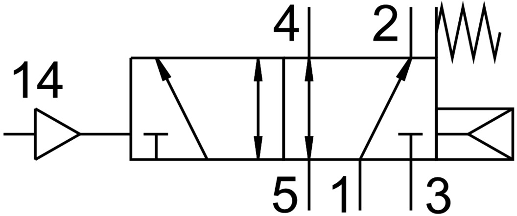 3/2 распределитель с электромагнитным управлением и пилотным каскадом.