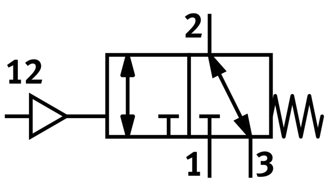 3/2 распределитель с электромагнитным управлением и пилотным каскадом.