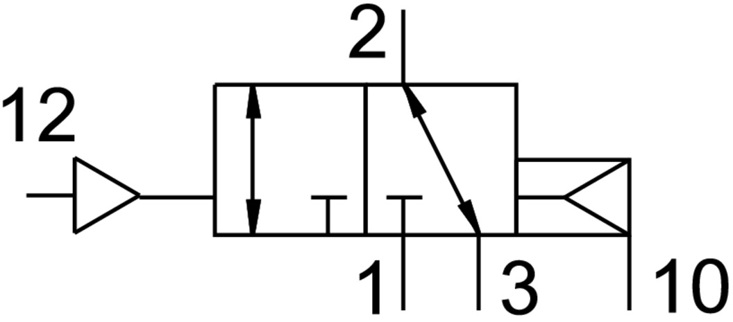 3/2 распределитель с электромагнитным управлением и пилотным каскадом.