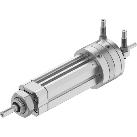 Цилиндры двустороннего действия имеют два отверстия для подвода сжатого воздуха – для выдвижения и втягивания штока соответственно.