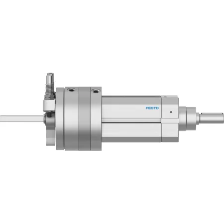 Пневмоцилиндр с пружиной в штоковой полости (на изображении выше) и нормально втянутым штоком называется толкающим. При расположении пружины в противоположной, поршневой полости, шток будет нормально выдвинутым, а пневмоцилиндр – тянущим.