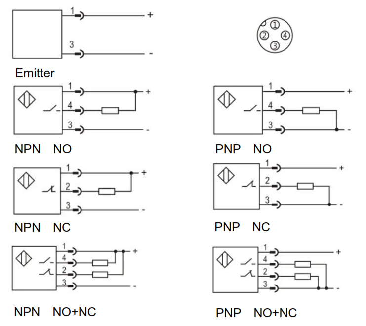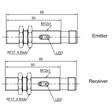 PR12-TM10DPR-E2 LANBAO - Оптический датчик световой барьер: приемник, M12, 1xНО, 1xНЗ, PNP, до 10 м