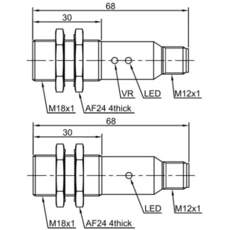Дискретный выход: PNP • Диапазон измерения: 400 мм • Электрическое подключение: разъём M12x1 • Крепежная резьба: M18x1 • Класс защиты: IP67 • Рабочее напряжение: 12 ÷ 24 V DC • Материал корпуса: латунь никелированная