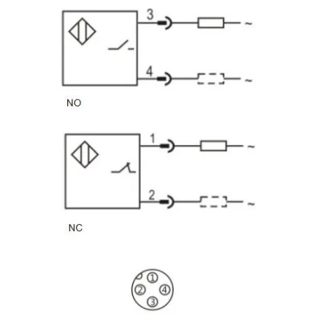 Дискретный выход: сухой контакт • Диапазон измерения: 3000 мм • Электрическое подключение: разъём M12x1 • Крепежная резьба: M18x1 • Класс защиты: IP67 • Рабочее напряжение: 20 ÷ 250 V AC • Материал корпуса: латунь никелированная