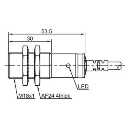 Дискретный выход: NPN • Диапазон измерения: 3000 мм • Электрическое подключение: кабель • Длина кабеля: 2м • Крепежная резьба: M18x1 • Класс защиты: IP67 • Рабочее напряжение: 12 ÷ 24 V DC • Материал корпуса: латунь никелированная