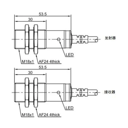 PR18-TM20DNO LANBAO - Оптический датчик световой барьер: приемник, M18, NPN, до 20 м