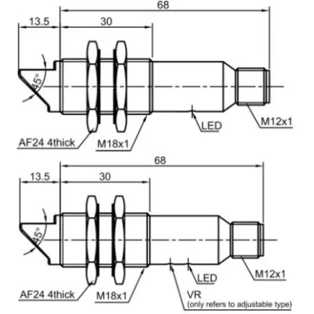 Дискретный выход: 1xНО, 1xНЗ, NPN • Диапазон измерения: 100 мм • Электрическое подключение: разъём M12x1 • Крепежная резьба: M18x1 • Класс защиты: IP67 • Рабочее напряжение: 12 ÷ 24 V DC • Материал корпуса: латунь никелированная