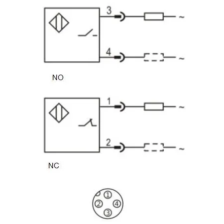 Дискретный выход: сухой контакт • Диапазон измерения: 3000 мм • Электрическое подключение: разъём M12x1 • Крепежная резьба: M18x1 • Класс защиты: IP65 • Рабочее напряжение: 20 ÷ 250 V AC • Материал корпуса: латунь никелированная