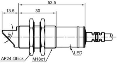 Дискретный выход: NPN • Диапазон измерения: 3000 мм • Электрическое подключение: кабель • Длина кабеля: 2м • Крепежная резьба: M18x1 • Класс защиты: IP65 • Рабочее напряжение: 12 ÷ 24 V DC • Материал корпуса: латунь никелированная