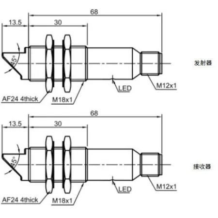 - датчик типа световой барьер: передатчик