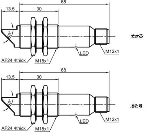 PR18G-TM10DPR-E2 LANBAO - Оптический датчик световой барьер: приемник, M18, 1xНО, 1xНЗ, PNP, до 10 м