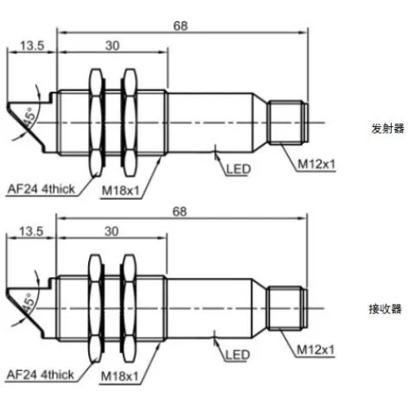 PR18G-TM20DPR-E2 LANBAO - Оптический датчик световой барьер: приемник, M18, 1xНО, 1xНЗ, PNP, до 20 м