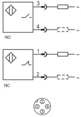 Дискретный выход: сухой контакт • Диапазон измерения: 100 мм • Электрическое подключение: кабель • Длина кабеля: 2м • Крепежная резьба: M18x1 • Класс защиты: IP65 • Рабочее напряжение: 20 ÷ 250 V AC • Материал корпуса: пластик