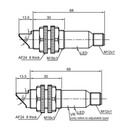 Дискретный выход: NPN • Диапазон измерения: 100 мм • Электрическое подключение: разъём M12x1 • Крепежная резьба: M18x1 • Класс защиты: IP65 • Рабочее напряжение: 12 ÷ 24 V DC • Материал корпуса: пластик