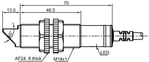 Дискретный выход: сухой контакт • Диапазон измерения: 3000 мм • Электрическое подключение: кабель • Длина кабеля: 2м • Крепежная резьба: M18x1 • Класс защиты: IP67 • Рабочее напряжение: 20 ÷ 250 V AC • Материал корпуса: пластик