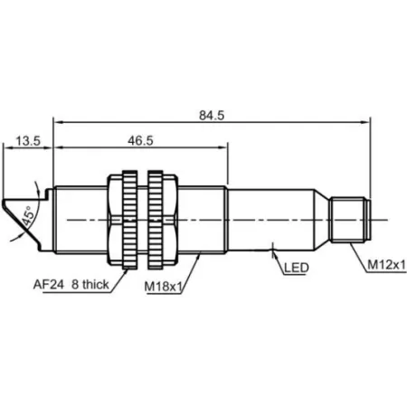 Дискретный выход: сухой контакт • Диапазон измерения: 3000 мм • Электрическое подключение: разъём M12x1 • Крепежная резьба: M18x1 • Класс защиты: IP67 • Рабочее напряжение: 20 ÷ 250 V AC • Материал корпуса: пластик
