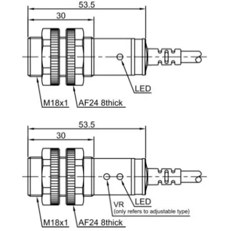 Дискретный выход: 1xНО, 1xНЗ, PNP • Диапазон измерения: 100 мм • Электрическое подключение: кабель • Длина кабеля: 2м • Крепежная резьба: M18x1 • Класс защиты: IP67 • Рабочее напряжение: 12 ÷ 24 V DC • Материал корпуса: пластик